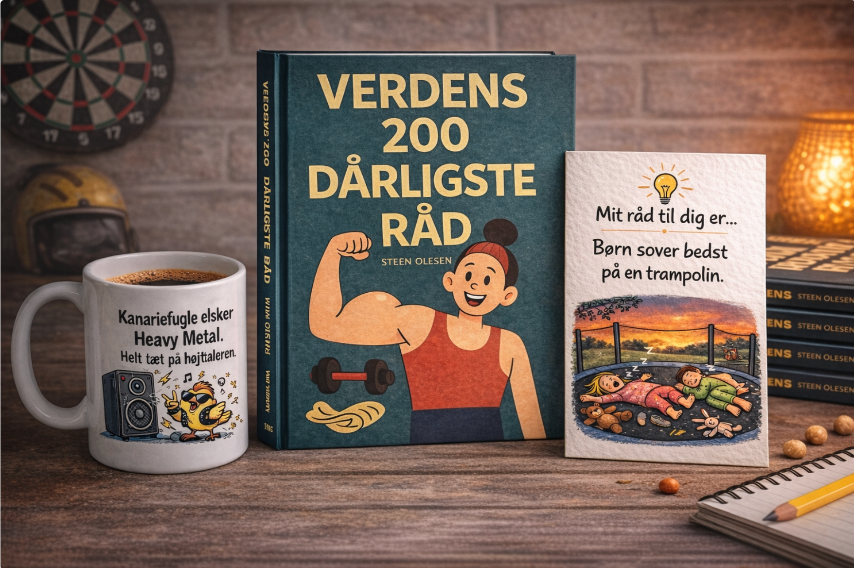 En kop kaffe smager bare bedre med et dårligt råd. Her får du humor, der rammer lige fra første slurk.